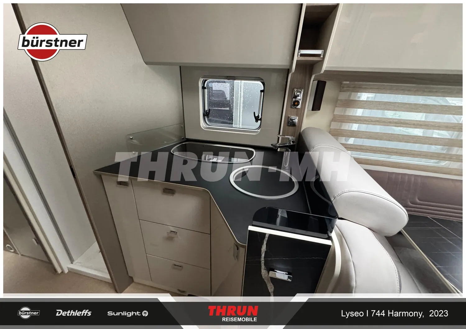 - Indirekte Beleuchtung unter den Dachoberschränken Sitzgruppe Fahrerseite, Küche und Heckbett