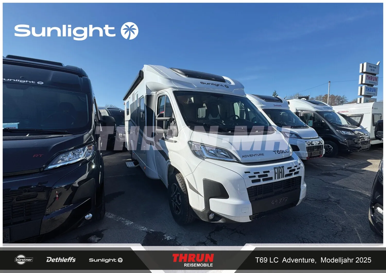 - Adventure Ausstattung 69LC (Fiat Ducato 3.500 kg | 2.2 Multijet | 103 kW | 140 PS Euro 6 | 6-Gang-Schaltgetriebe, Chassisfarbe Weiß, Adventure Beklebung, Wohnwelt Adventure, Design Applikation Heck, Fenster in Fronthaube, Rahmenfenster, 2. Außenstauraumklappe (Größe modellabhängig), Großer Kühlschrank 156 l mit separatem Frosterfach 29 l, Bettenumbau im Bereich Sitzgruppe, Paket One Black (Markise, Fahrradträger 3-fach), Bridge Light, Komfort Eingangstür mit Fenster, Fliegengittertür (einteilig), Panoramadachhaube 70 x 50 cm, Klarglasdachhaube 40 x 40 cm, Stoßfänger lackiert, Skid Plate Schwarz, Nebelscheinwerfer, Lenkrad & Schaltknauf in Lederausführung, Luftauslässe mit Applikationen Silber (Techno-Trim), 16" Alufelgen Bi-Color)