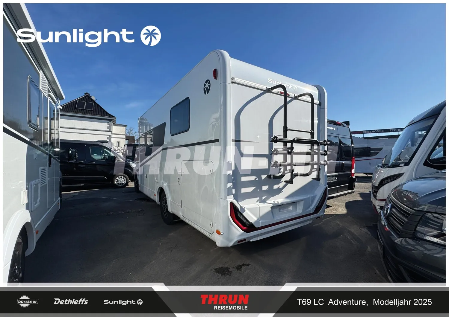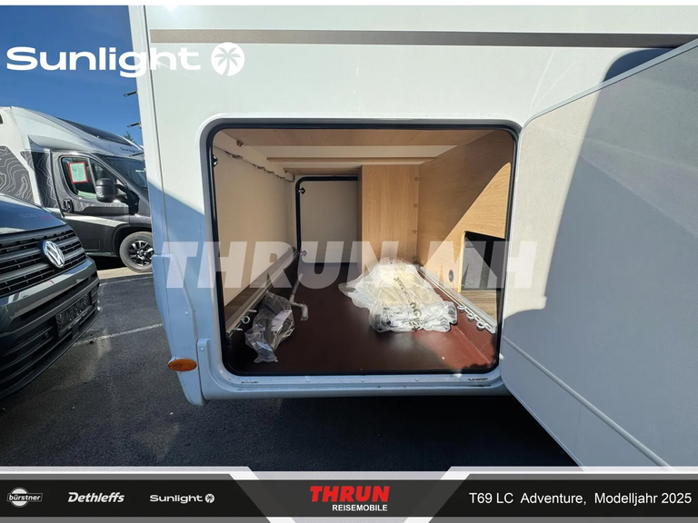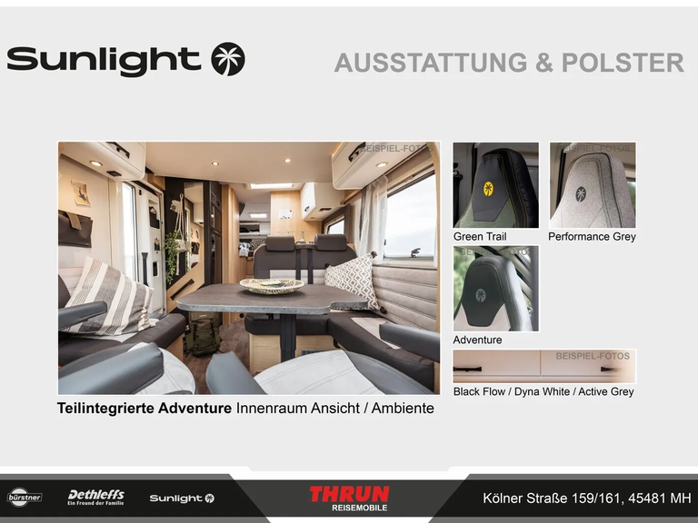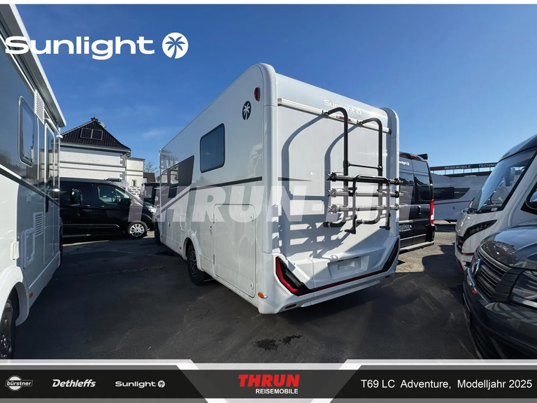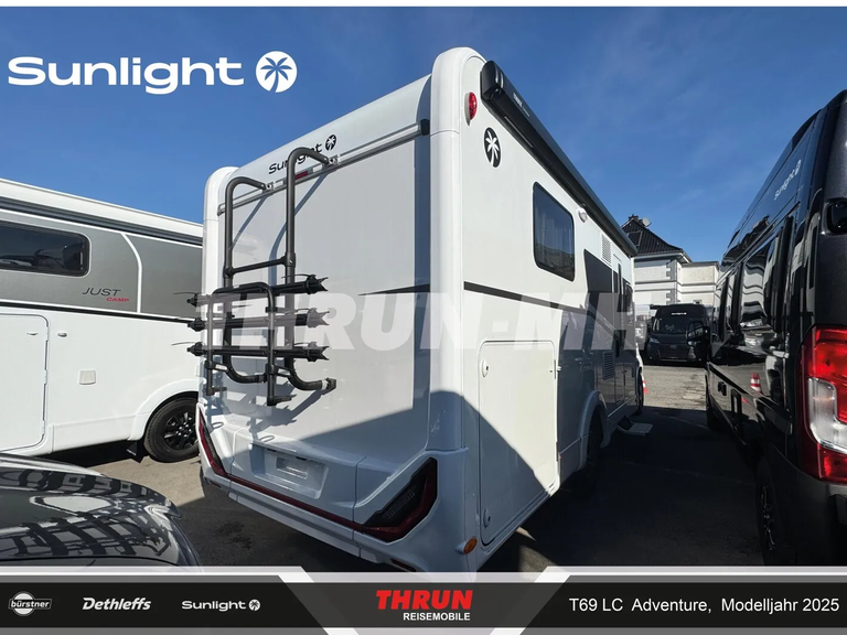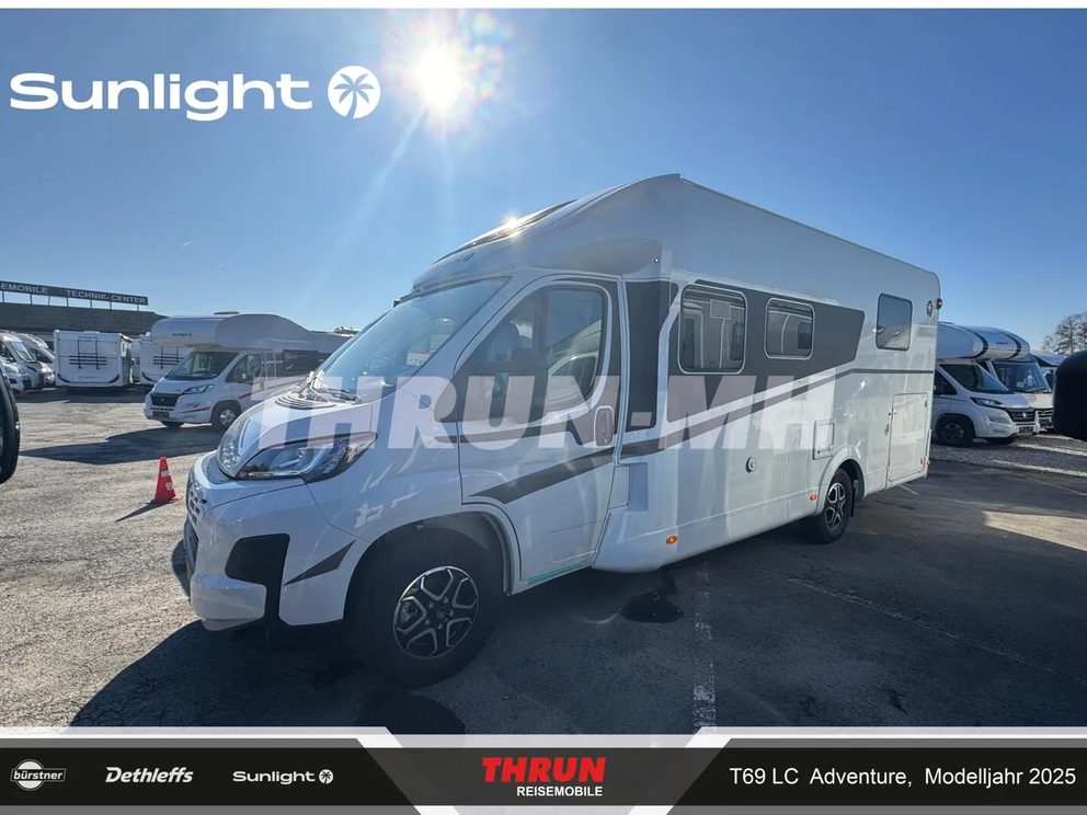 - Adventure Ausstattung 69LC (Fiat Ducato 3.500 kg | 2.2 Multijet | 103 kW | 140 PS Euro 6 | 6-Gang-Schaltgetriebe, Chassisfarbe Weiß, Adventure Beklebung, Wohnwelt Adventure, Design Applikation Heck, Fenster in Fronthaube, Rahmenfenster, 2. Außenstauraumklappe (Größe modellabhängig), Großer Kühlschrank 156 l mit separatem Frosterfach 29 l, Bettenumbau im Bereich Sitzgruppe, Paket One Black (Markise, Fahrradträger 3-fach), Bridge Light, Komfort Eingangstür mit Fenster, Fliegengittertür (einteilig), Panoramadachhaube 70 x 50 cm, Klarglasdachhaube 40 x 40 cm, Stoßfänger lackiert, Skid Plate Schwarz, Nebelscheinwerfer, Lenkrad & Schaltknauf in Lederausführung, Luftauslässe mit Applikationen Silber (Techno-Trim), 16" Alufelgen Bi-Color)