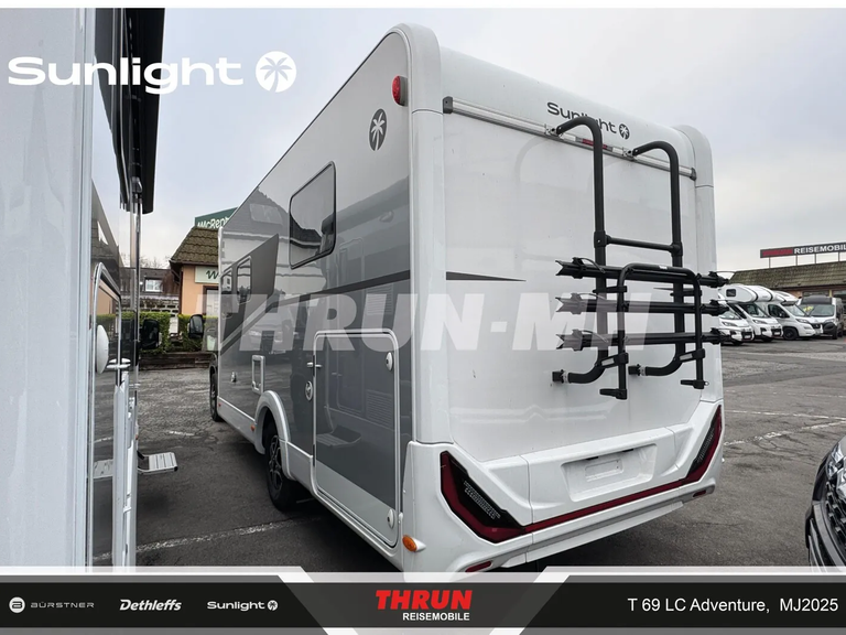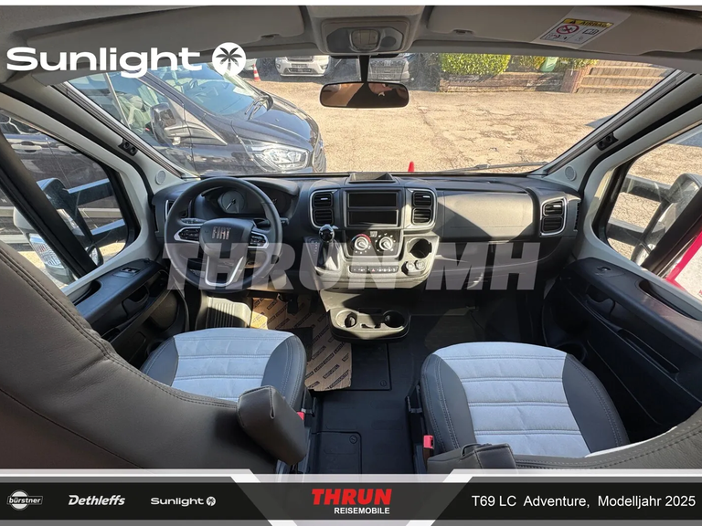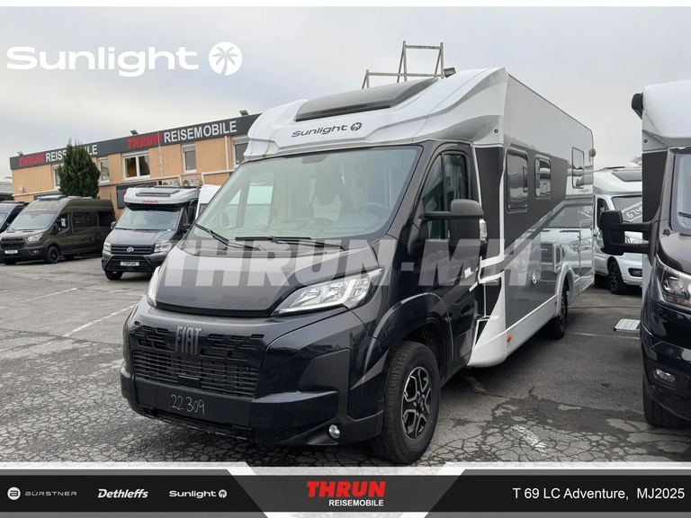 - Adventure Ausstattung 69LC (Fiat Ducato 3.500 kg | 2.2 Multijet | 103 kW | 140 PS Euro 6 | 6-Gang-Schaltgetriebe, Chassisfarbe Weiß, Adventure Beklebung, Wohnwelt Adventure, Design Applikation Heck, Fenster in Fronthaube, Rahmenfenster, 2. Außenstauraumklappe (Größe modellabhängig), Großer Kühlschrank 156 l mit separatem Frosterfach 29 l, Bettenumbau im Bereich Sitzgruppe, Paket One Black (Markise, Fahrradträger 3-fach), Bridge Light, Komfort Eingangstür mit Fenster, Fliegengittertür (einteilig), Panoramadachhaube 70 x 50 cm, Klarglasdachhaube 40 x 40 cm, Stoßfänger lackiert, Skid Plate Schwarz, Nebelscheinwerfer, Lenkrad & Schaltknauf in Lederausführung, Luftauslässe mit Applikationen Silber (Techno-Trim), 16" Alufelgen Bi-Color)