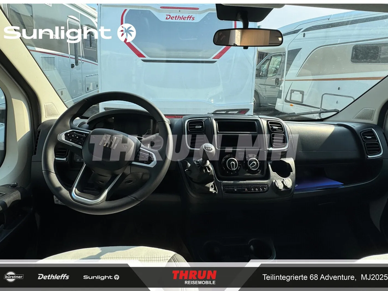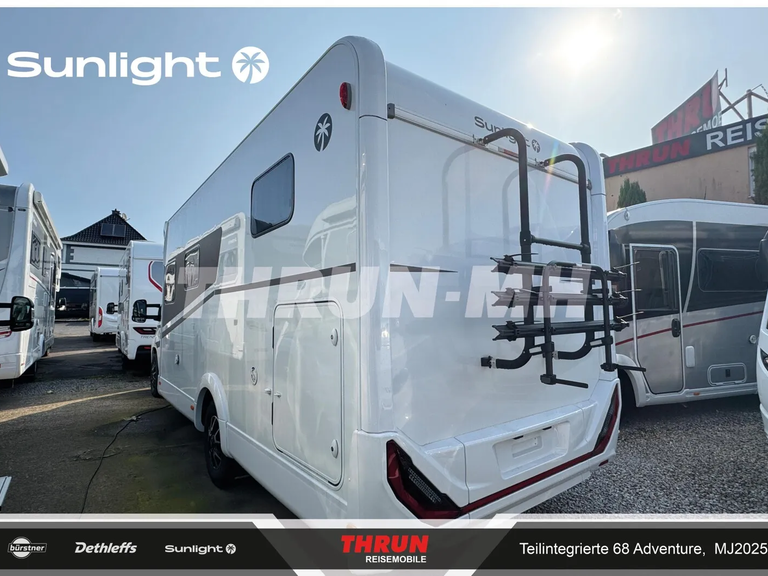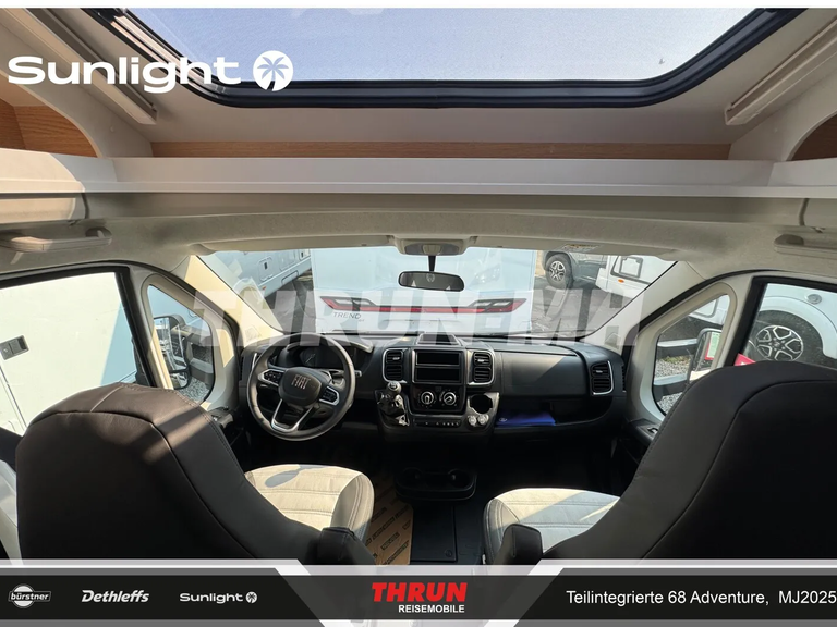 - Editionsausstattung Adventure 68 (Fiat Ducato 3.500 kg - 2.2 Multijet - 103 kW / 140 PS Euro 6 - 6-Gang-Schaltgetriebe, Chassisfarbe Weiß, Adventure Beklebung, Wohnwelt Adventure, Design Applikation Heck, Fenster in Fronthaube, Rahmenfenster, 2. Außenstauraumklappe (Größe modellabhängig), Großer Kühlschrank 156 l mit separatem Frosterfach 29 l, Bettenumbau Einzelbett zu Doppelbett, Paket One Black (Markise, Fahrradträger 3-fach), Bridge Light, Komfort Eingangstür mit Fenster, Fliegengittertür (einteilig), Panoramadachhaube 70 x 50 cm, Klarglasdachhaube 40 x 40 cm, Stoßfänger lackiert, Skid Plate Schwarz, Nebelscheinwerfer, Lenkrad & Schaltknauf in Lederausführung, Luftauslässe mit Applikationen Silber (Techno-Trim), 16" Alufelgen Bi-Color)