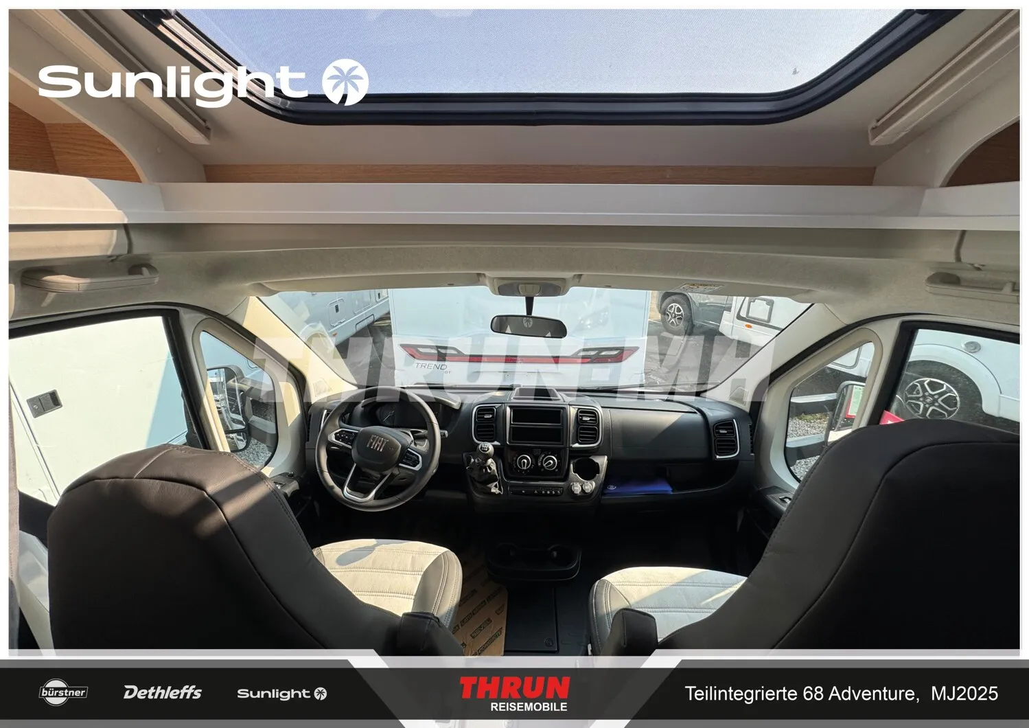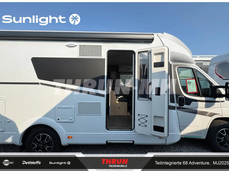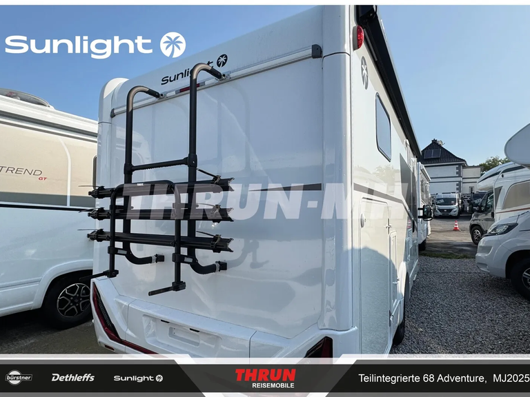 - Adventure Ausstattung 68 (Fiat Ducato 3.500 kg | 2.2 Multijet | 103 kW | 140 PS Euro 6 | 6-Gang-Schaltgetriebe, Chassisfarbe Weiß, Adventure Beklebung, Wohnwelt Adventure, Design Applikation Heck, Fenster in Fronthaube, Rahmenfenster, 2. Außenstauraumklappe (Größe modellabhängig), Großer Kühlschrank 156 l mit separatem Frosterfach 29 l, Bettenumbau Einzelbett zu Doppelbett, Paket One Black (Markise, Fahrradträger 3-fach), Bridge Light, Komfort Eingangstür mit Fenster, Fliegengittertür (einteilig), Panoramadachhaube 70 x 50 cm, Klarglasdachhaube 40 x 40 cm, Stoßfänger lackiert, Skid Plate Schwarz, Nebelscheinwerfer, Lenkrad & Schaltknauf in Lederausführung, Luftauslässe mit Applikationen Silber (Techno-Trim), 16" Alufelgen Bi-Color)