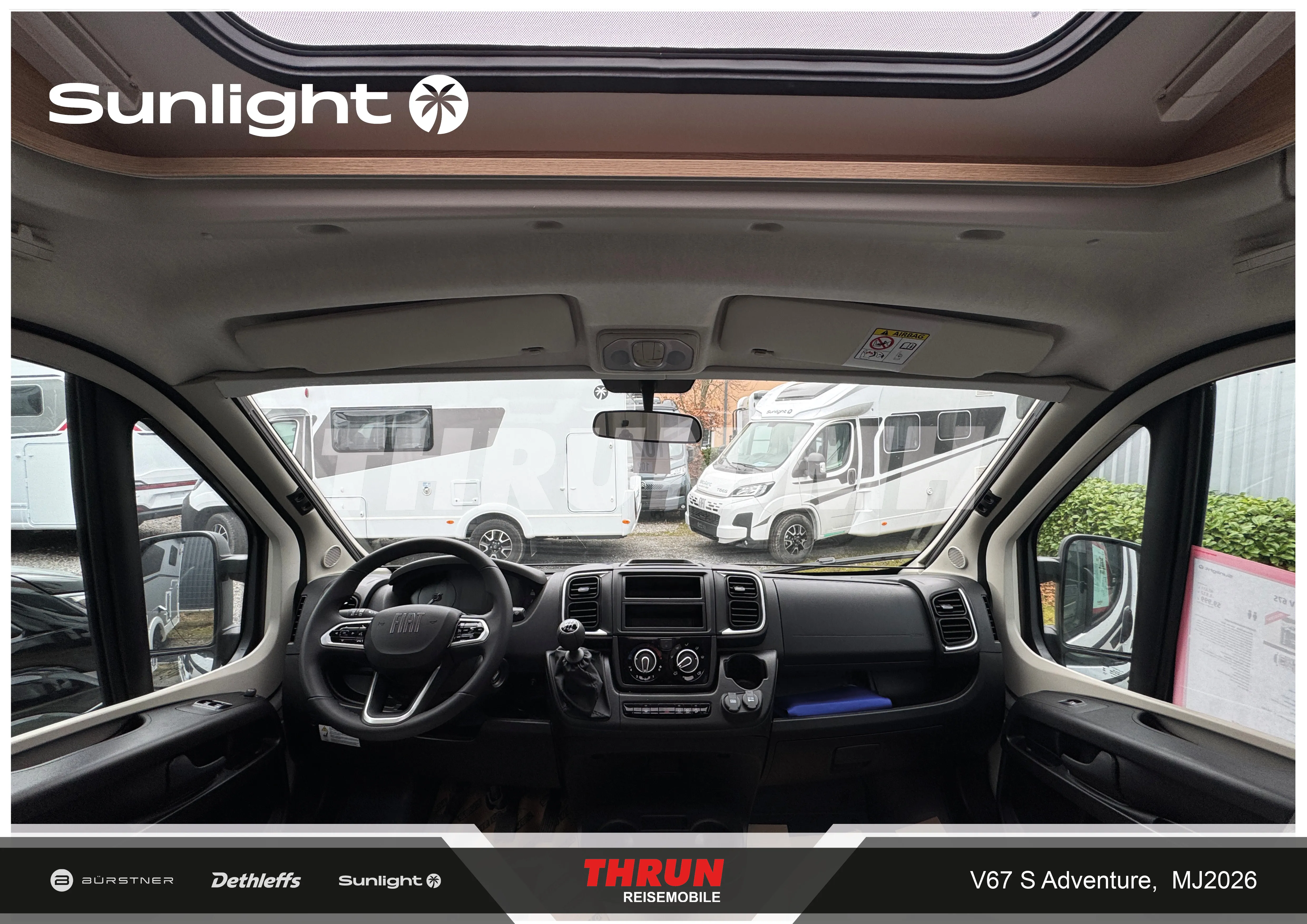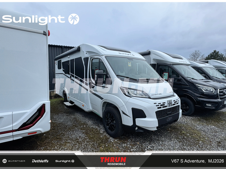 - Aktionsprämie "Ready to Roll" (Der Aktionszeitraum der Ready to Roll Aktion erstreckt sich auf abgeschlossene Kaufverträge vom 15.01.2026 ,bis einschließlich 31.03.2026. Die Aktion ist gültig bei allen teilnehmenden Handelspartnern von SUNLIGHT und gilt ausschließlich für den Kauf von Neufahrzeugen. Der Aktionswert variiert je nach Baureihe und beinhaltet die Mehrwertsteuer. Sunlight behält sich das Recht vor, Aktionsbedingungen jederzeit zu ändern sowie die Aktion vorzeitig zu beenden. Kaufverträge innerhalb der Aktion sind vom Widerruf ausgeschlossen. )
